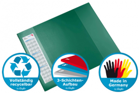 Die Läufer Durella Schreibunterlage mit zwei 13 cm breiten, blendfreien Seitentaschen rechts und links für wichtige Notizen und dem beigefügten, auswechselbaren 3-Jahreskalender. grün 52x65 cm