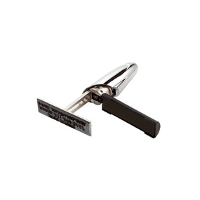Exklusiver Stempelkugelschreiber mit individueller Textplatte. Textplatte und Kissen befinden sich im Kappenteil.
